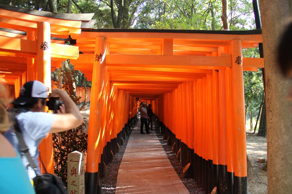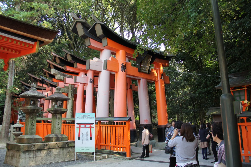 伏見稲荷大社といえば、なんといっても朱色の鳥居がズラリと並ぶ風景が有名です。