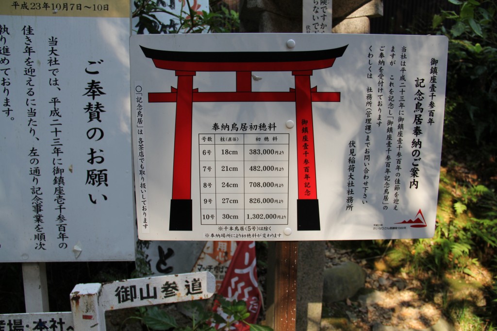 実はこれらの鳥居は、一般の人でも奉納することが可能です。初穂料(値段)の案内板がありましたが、皆さんはどう感じますか?個人的には「思ったより高くないかも」という印象を受けました。