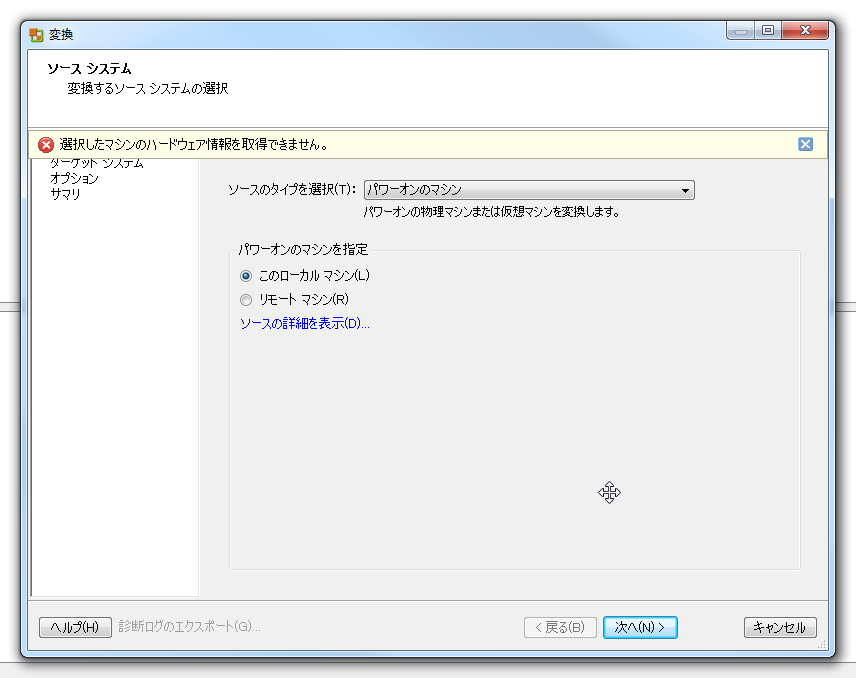 【P2V】物理マシンを仮想化!VMware vCenter Converterの使い方と「ハードウェア情報を取得できません」エラー対処法