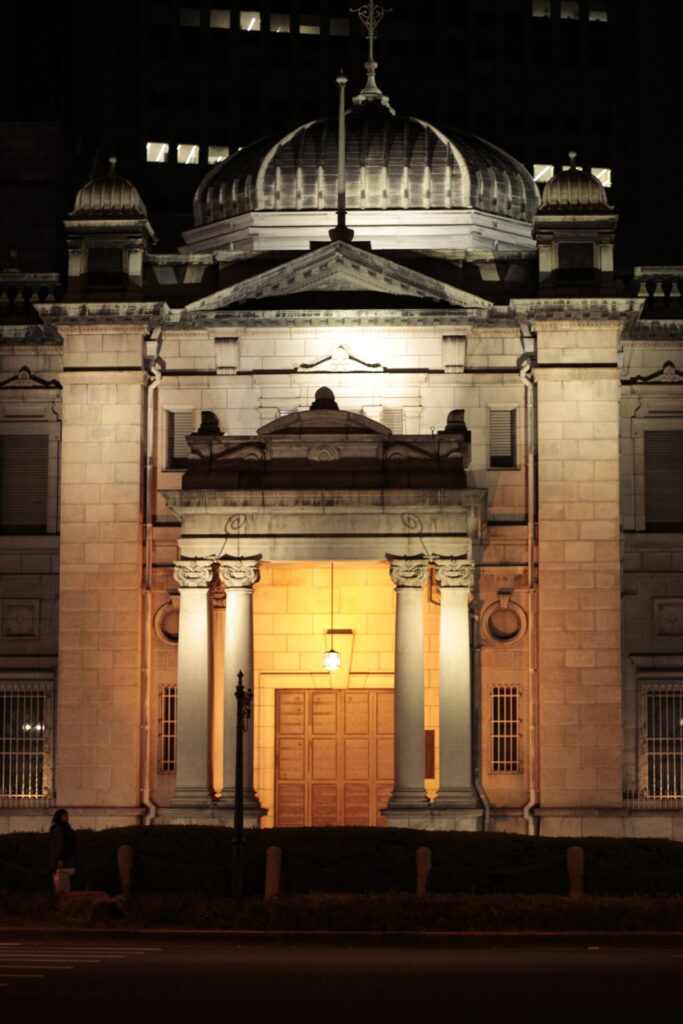【大阪・淀屋橋】日曜日のオフィス街と日本銀行のライトアップ